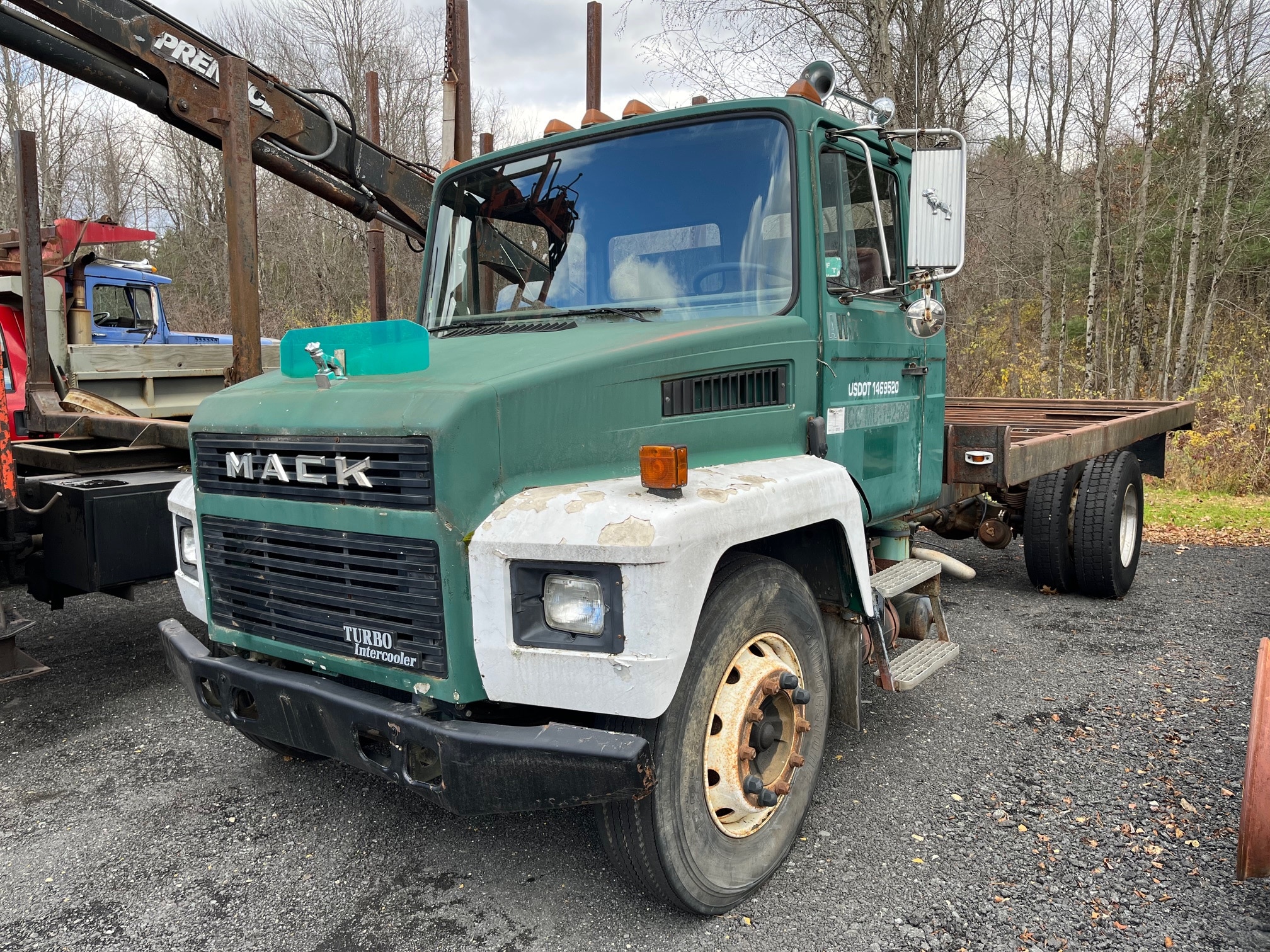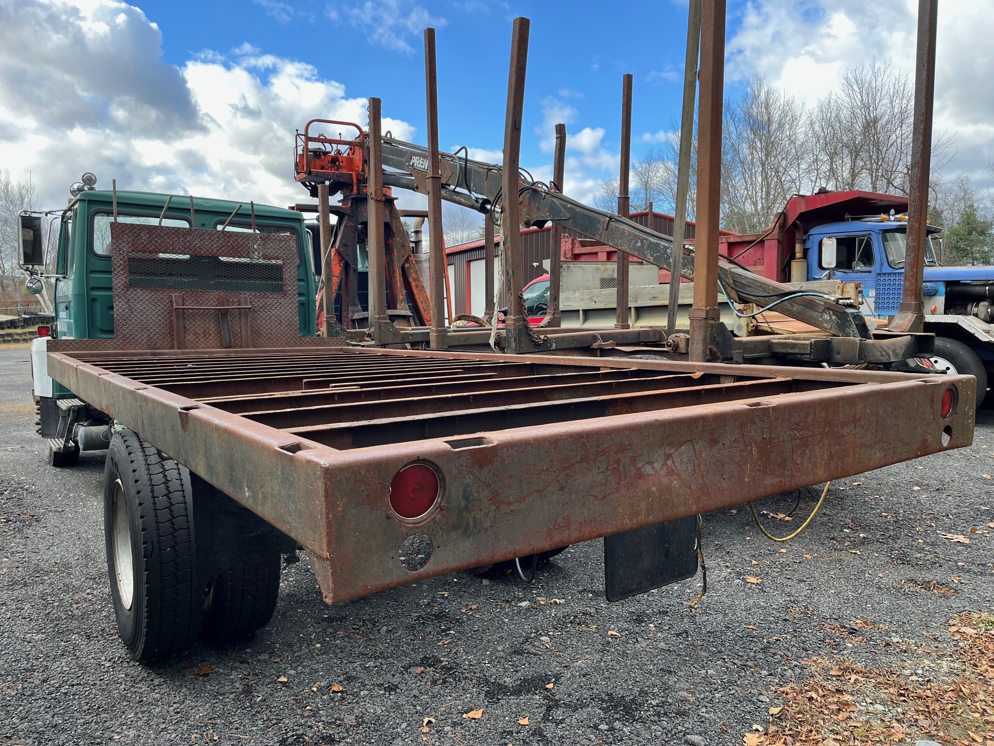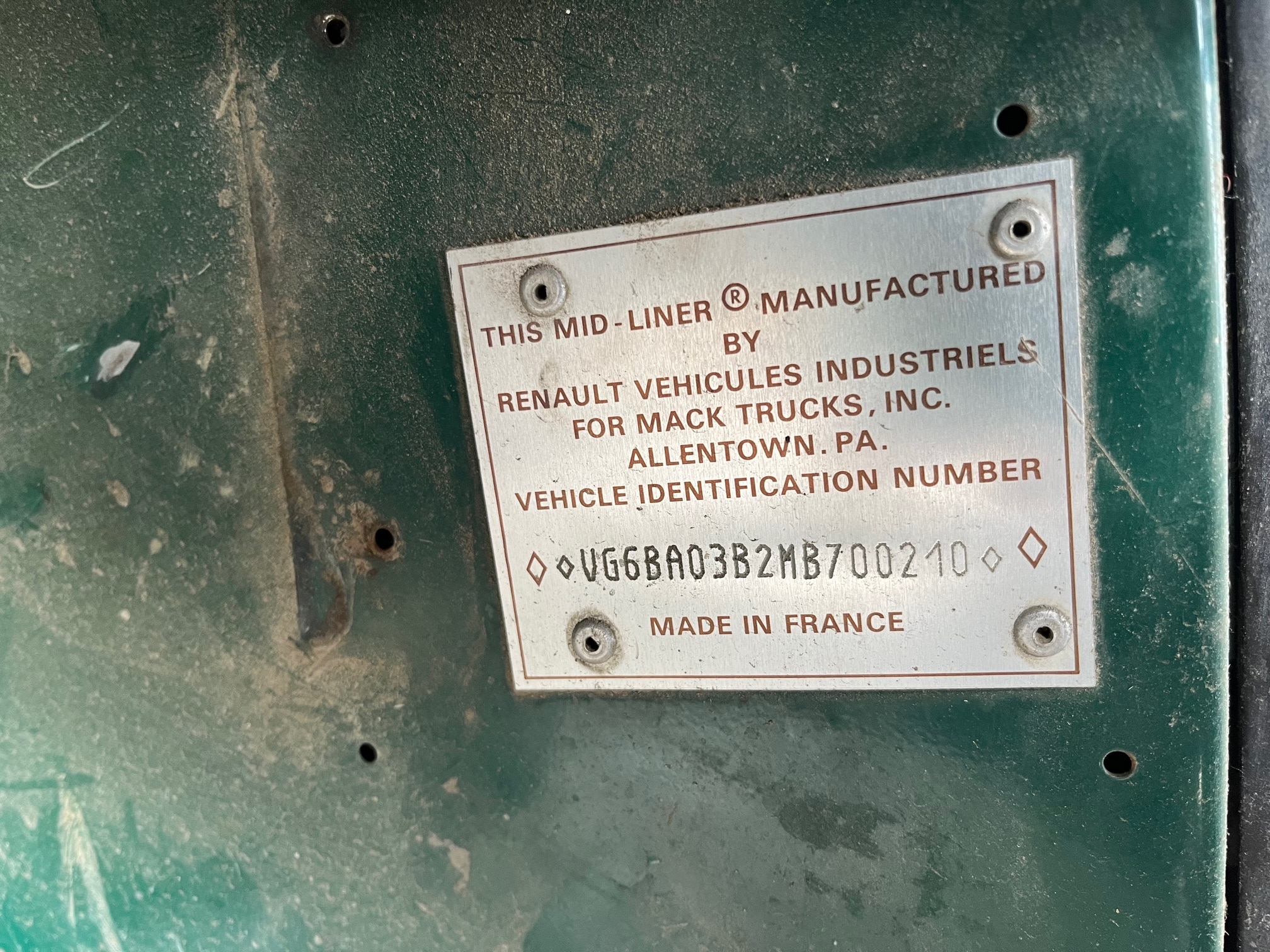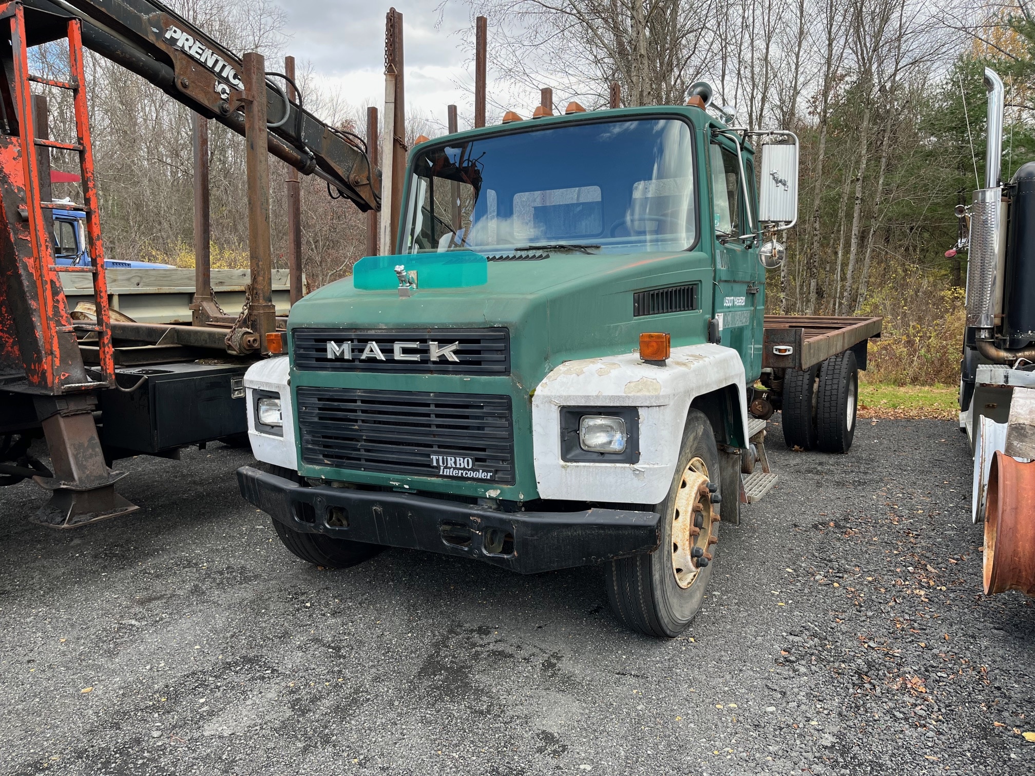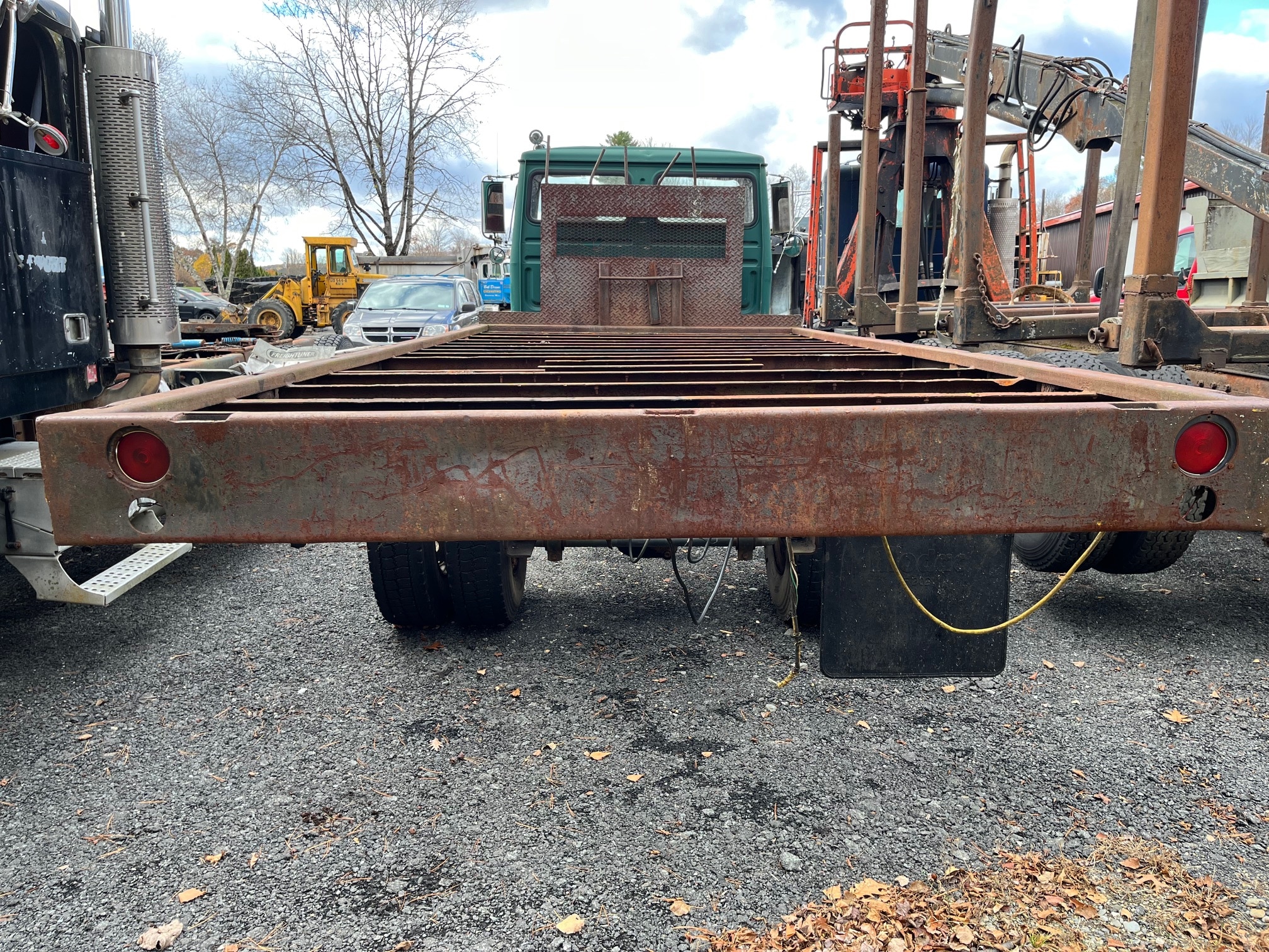 Mack Renault Flatbed Truck. 1990 custom steel bed flatbed delivery truck work truck. The engine is a turbocharged 6-cylinder Mack with a 5-speed transmission. The steering axle suspension weight on the truck is 12,000 lbs. The rear axle weights are 33,000 lbs. The steel deck measures 8 feet wide by 16 feet long. The wheelbase is 245 inches. GVW is 35,000 lbs.