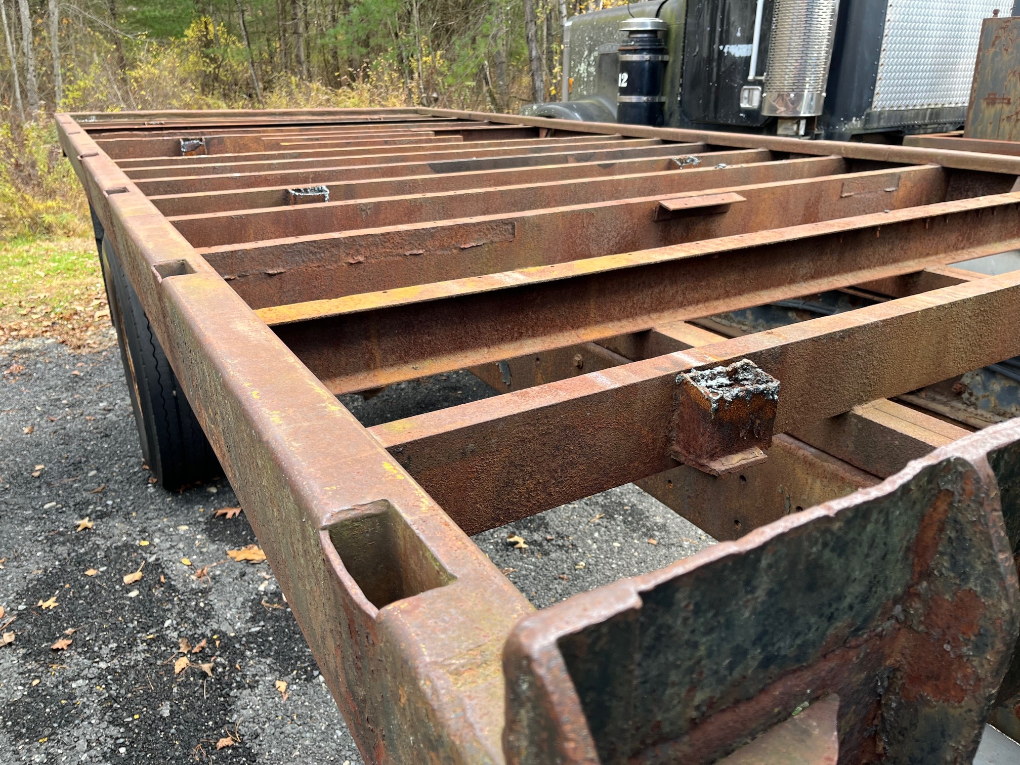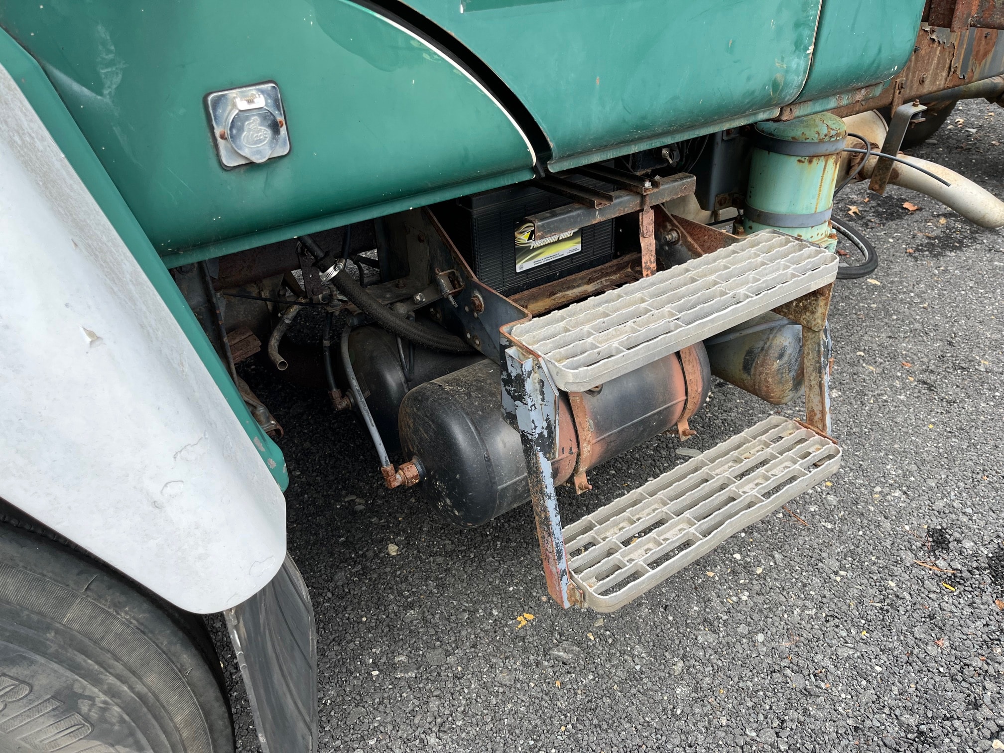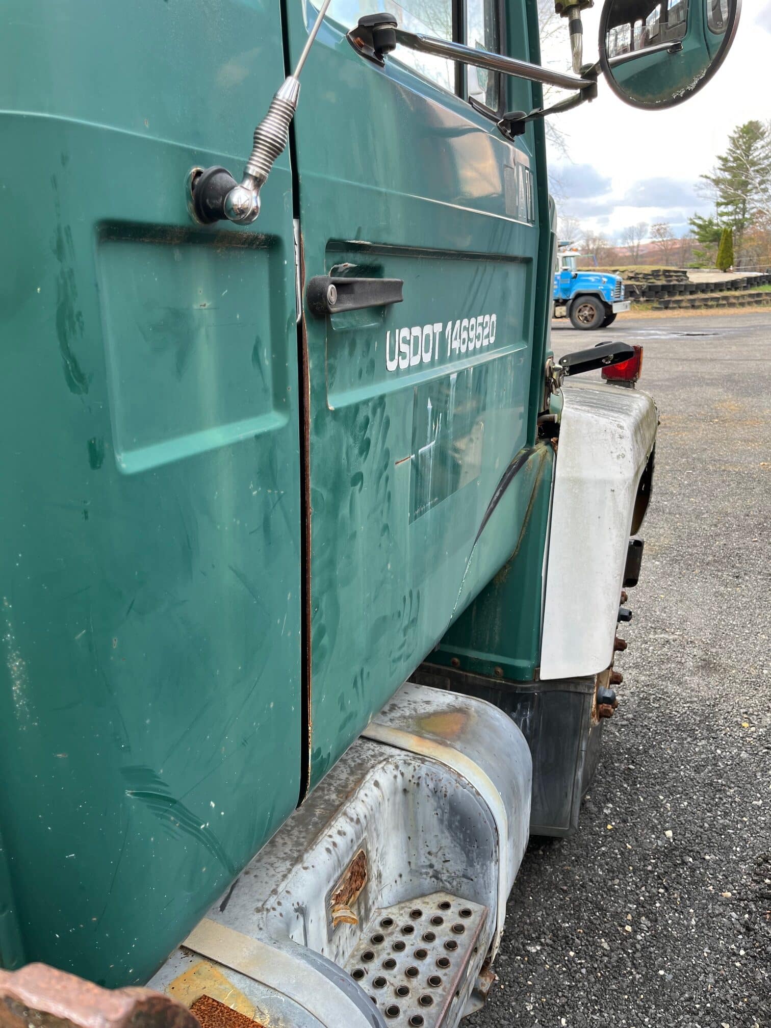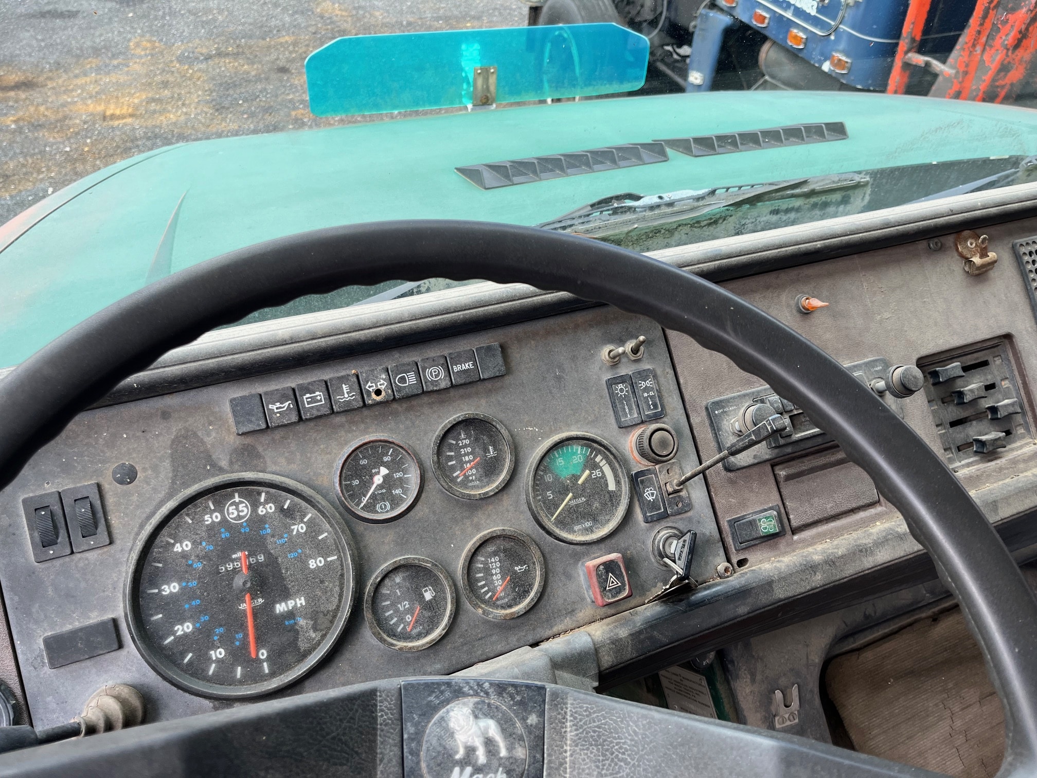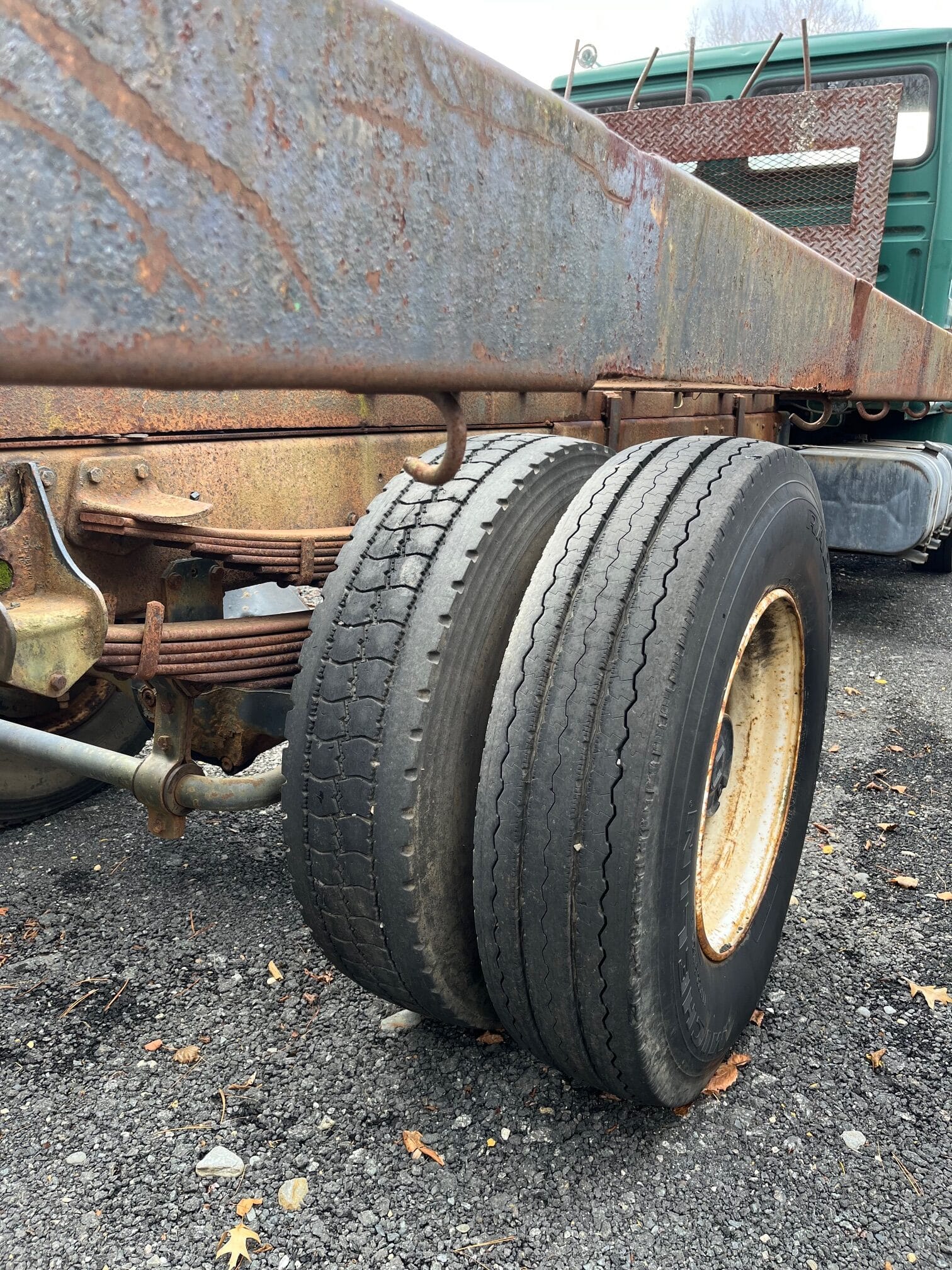 Mack Renault Flatbed Truck. 1990 custom steel bed flatbed delivery truck work truck. The engine is a turbocharged 6-cylinder Mack with a 5-speed transmission. The steering axle suspension weight on the truck is 12,000 lbs. The rear axle weights are 33,000 lbs. The steel deck measures 8 feet wide by 16 feet long. The wheelbase is 245 inches. GVW is 35,000 lbs.