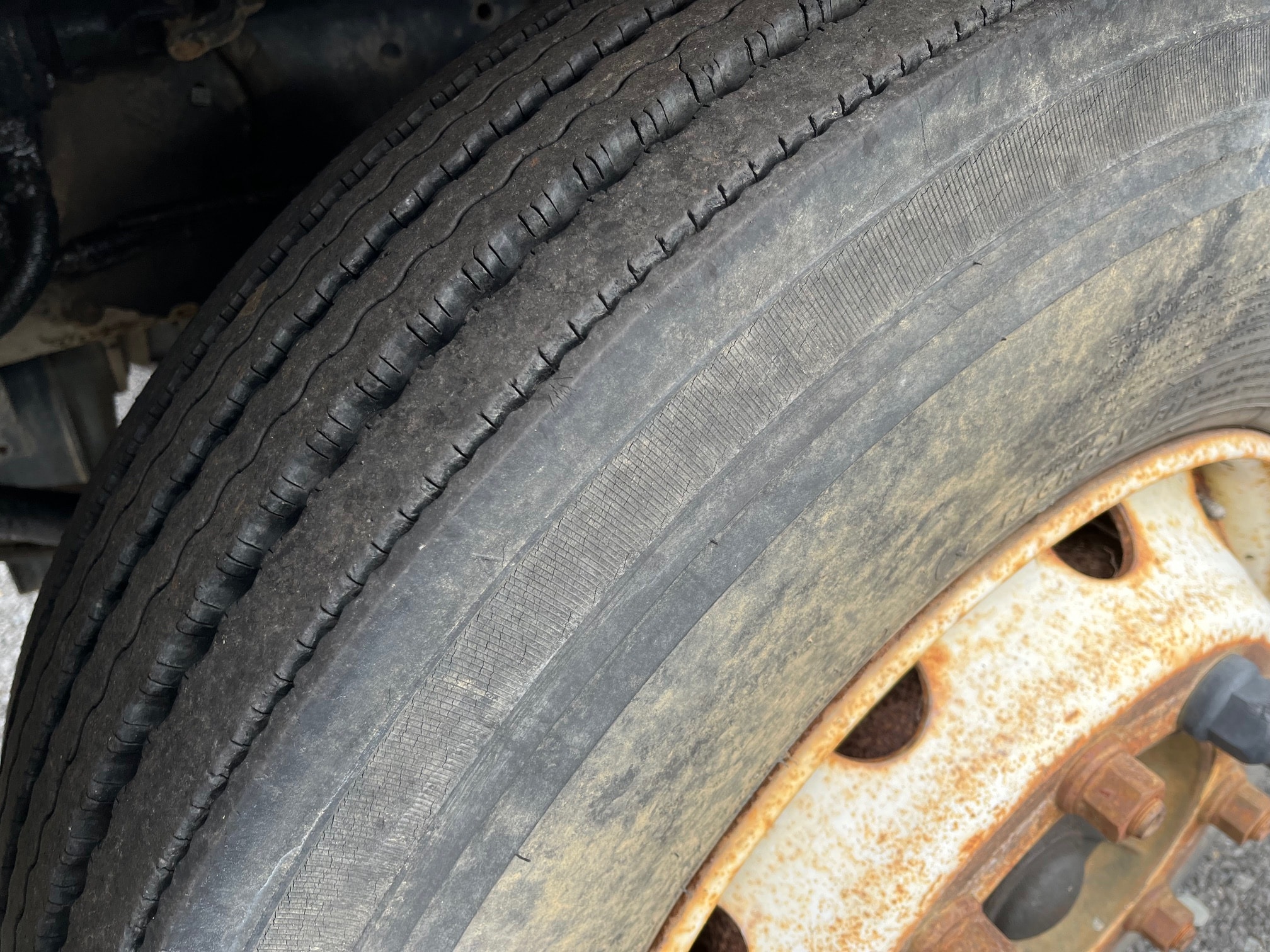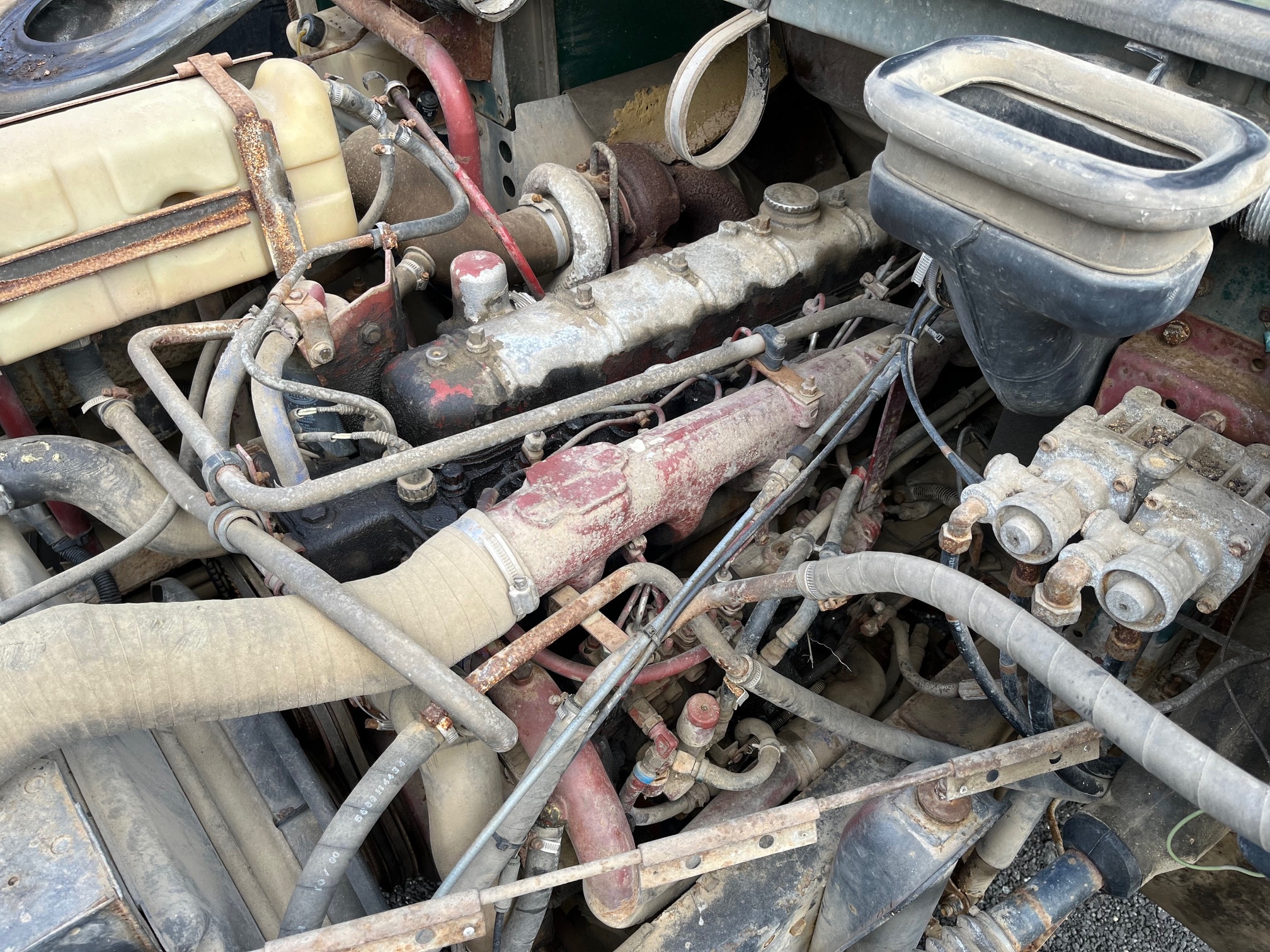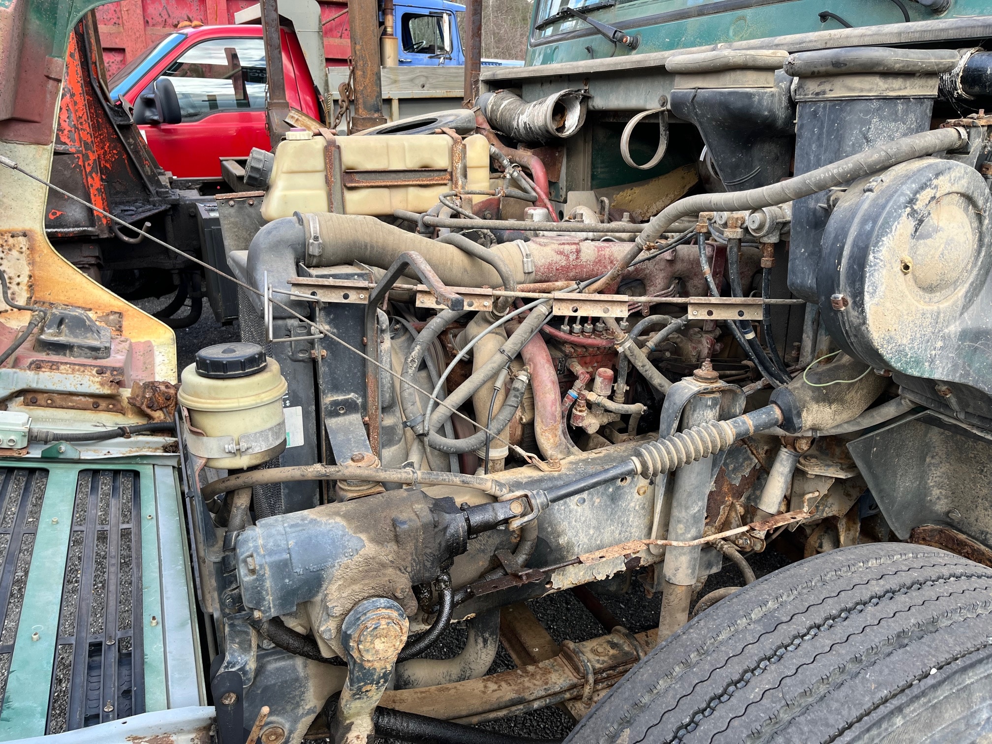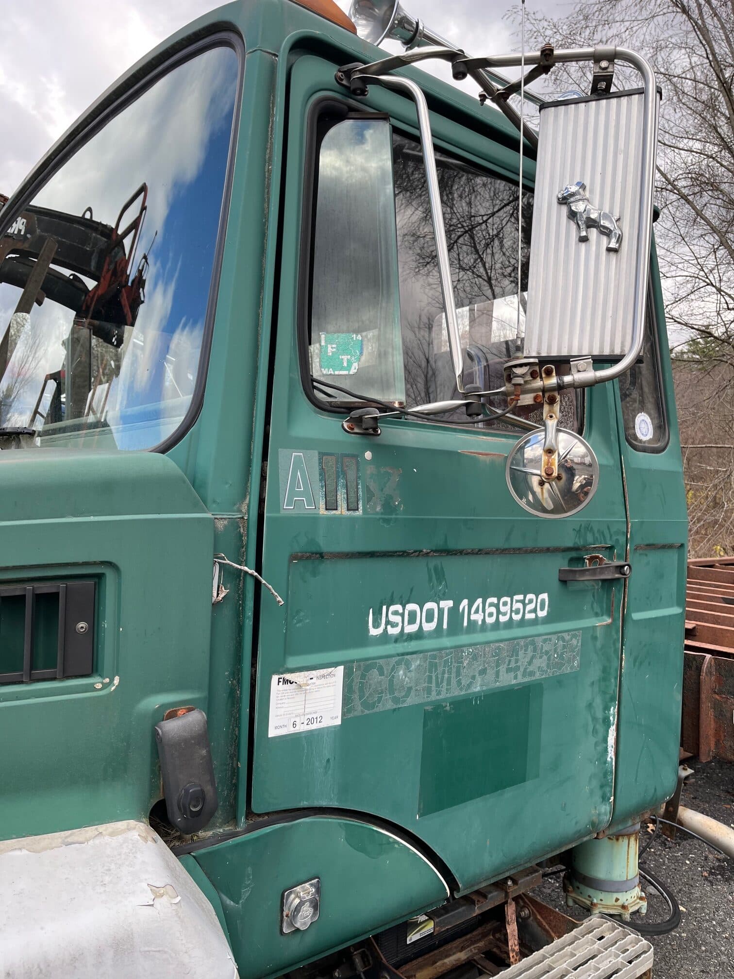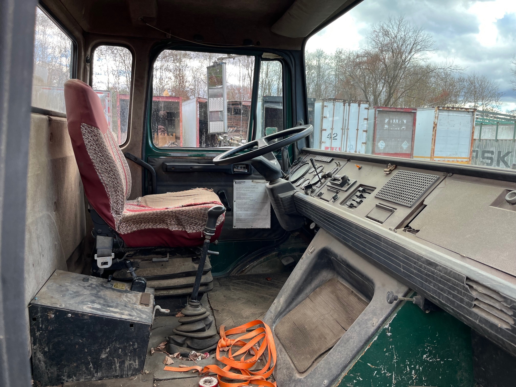 Mack Renault Flatbed Truck. 1990 custom steel bed flatbed delivery truck work truck. The engine is a turbocharged 6-cylinder Mack with a 5-speed transmission. The steering axle suspension weight on the truck is 12,000 lbs. The rear axle weights are 33,000 lbs. The steel deck measures 8 feet wide by 16 feet long. The wheelbase is 245 inches. GVW is 35,000 lbs.